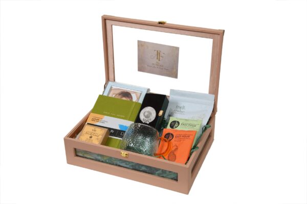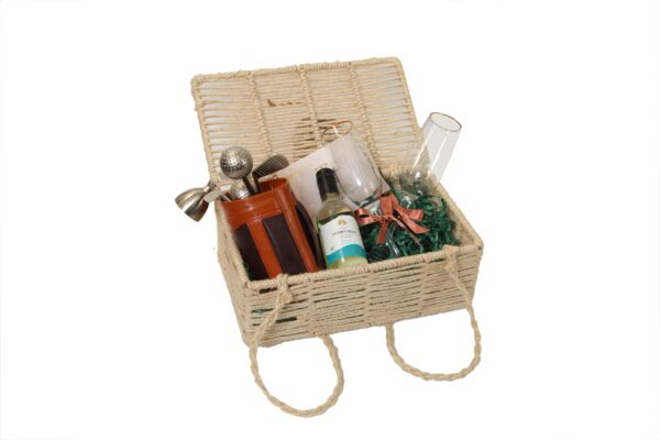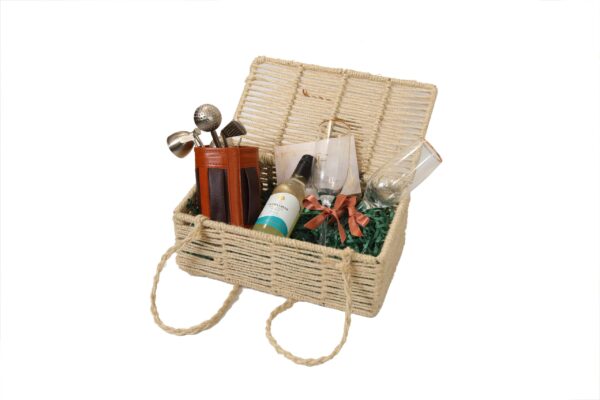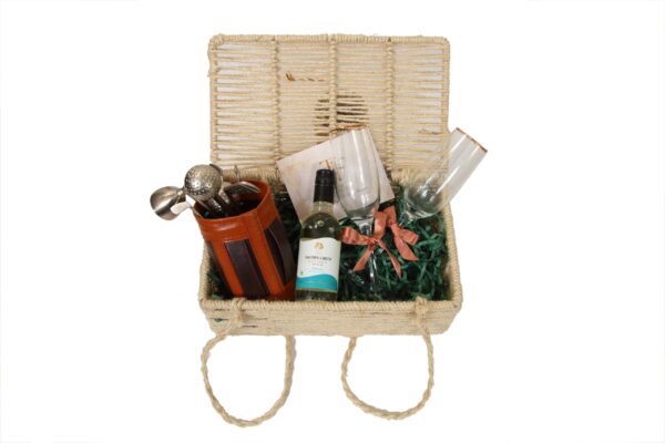 Designed for moments of refined celebration, this exquisite set is perfect for those who appreciate elegance and sophistication. It features a beautifully crafted holder designed to securely accommodate two champagne flutes, complemented by a bottle of non-alcoholic sparkling wine for a delightful toast. Adding a touch of luxury, a premium leather case ensures stylish and secure storage. For golf enthusiasts, the set includes a distinctive golf-themed bar kit, merging passion with indulgence. A thoughtfully curated personalized note adds a sentimental touch, making each gift truly special. Finally, the ensemble is elegantly tied with a satin ribbon, completing the presentation with grace and sophistication. Whether for a special occasion, a corporate gesture, or a memorable keepsake, this beautifully arranged set embodies luxury, style, and heartfelt appreciation.